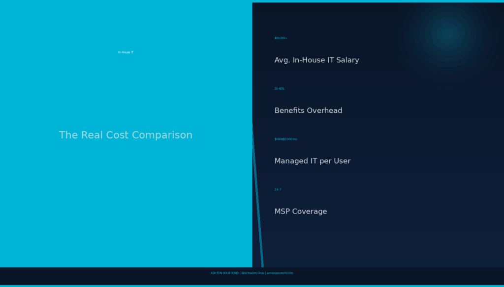 Discover the true total cost of in-house IT staff versus managed IT services for Ohio businesses. Ashton Solutions breaks down salary, benefits, turnover, MSP pricing, coverage models, and co-managed IT options.