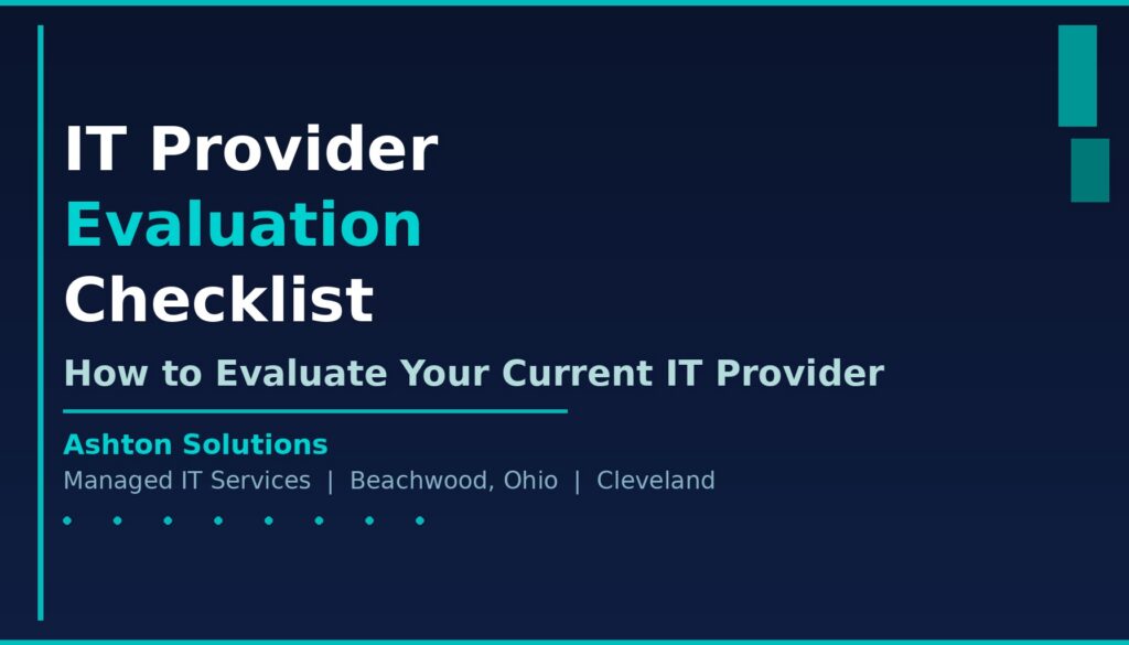 Use this expert checklist to evaluate your managed IT provider. Covers SLAs, security, reporting, scalability, pricing, and red flags. From Ashton Solutions, Beachwood OH.