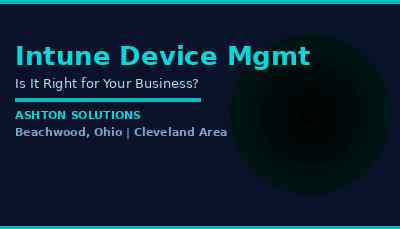 Learn how Microsoft Intune device management helps small businesses in Cleveland, Ohio secure endpoints, manage BYOD, deploy apps, and enforce compliance policies with expert guidance from Ashton Solutions in Beachwood, Ohio.