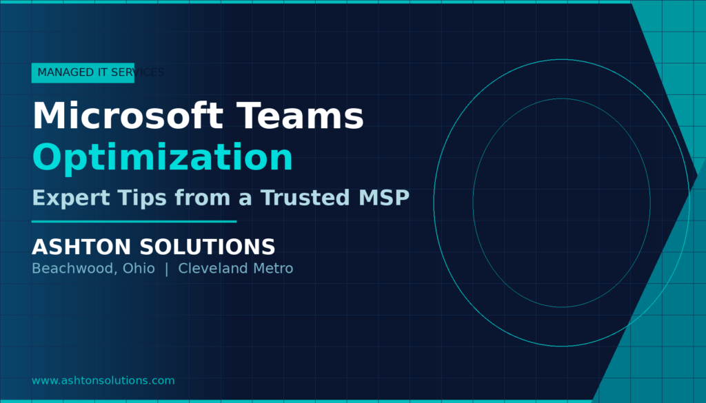 Ashton Solutions shares proven Microsoft Teams optimization tips for Cleveland-area businesses: governance, channel structure, app integrations, Teams Phone, security settings, and performance tuning from a trusted MSP in Beachwood, Ohio.